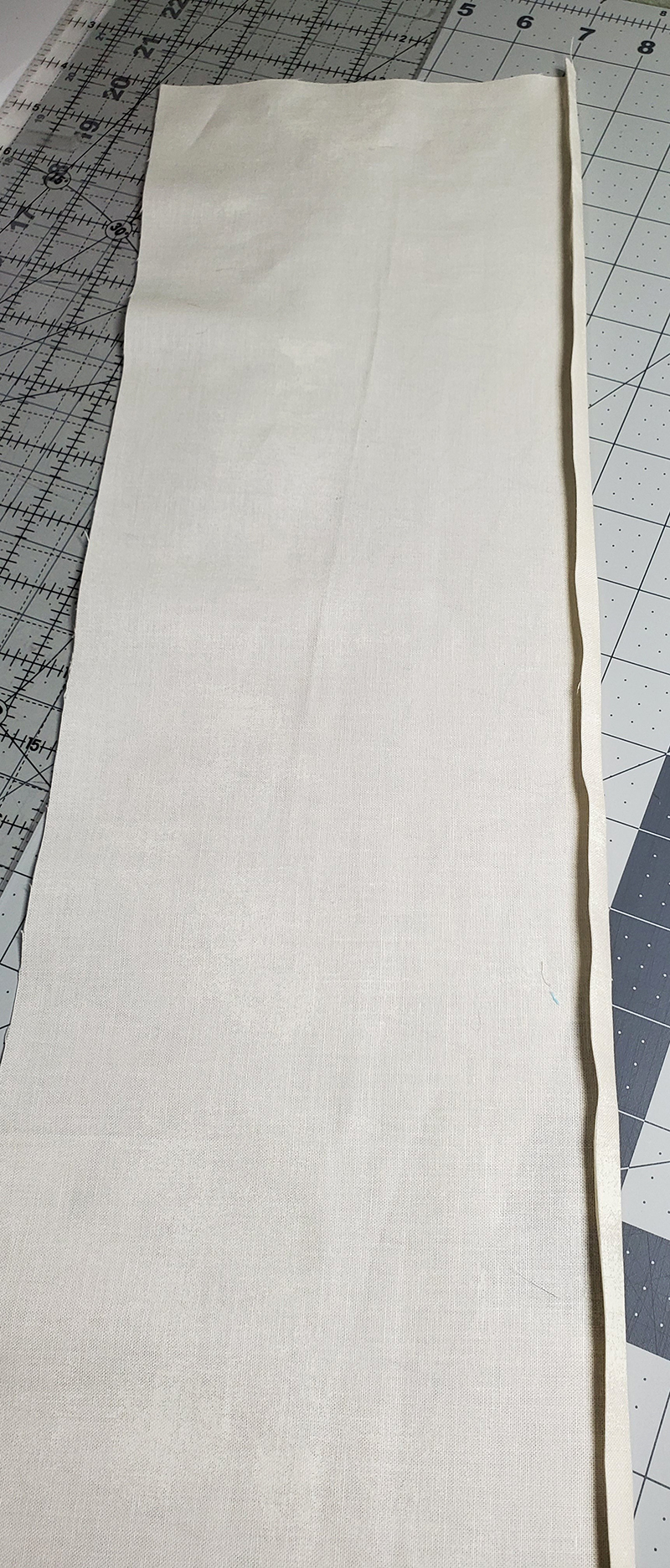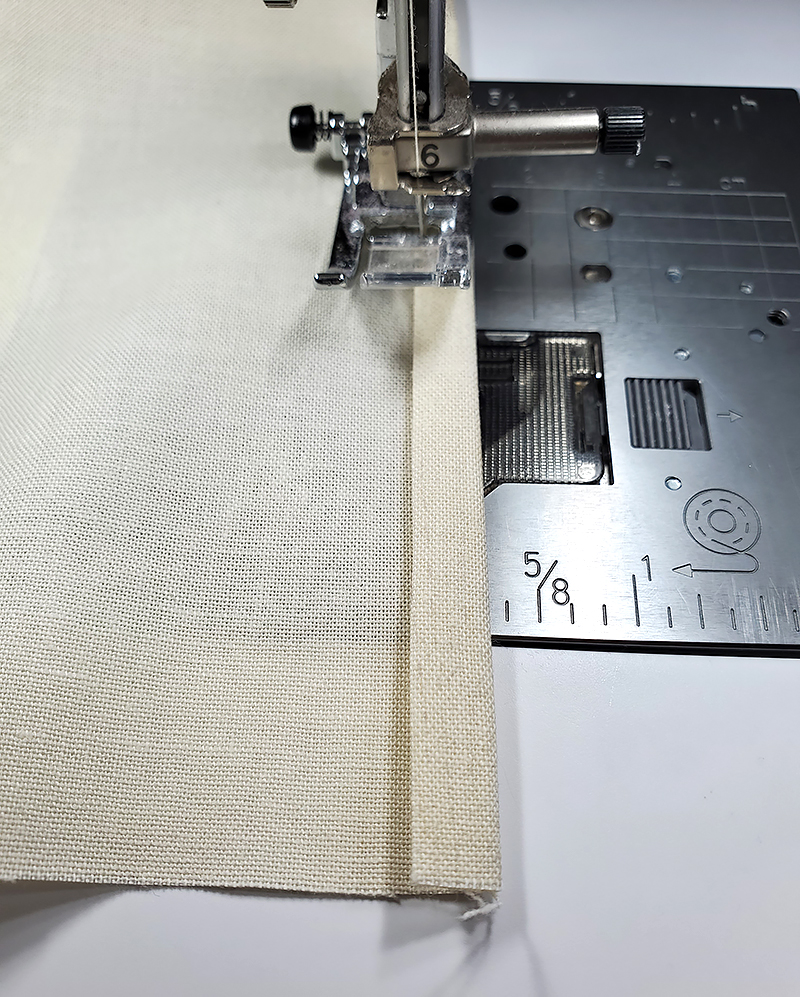 28. Fold over ¼” again and press.