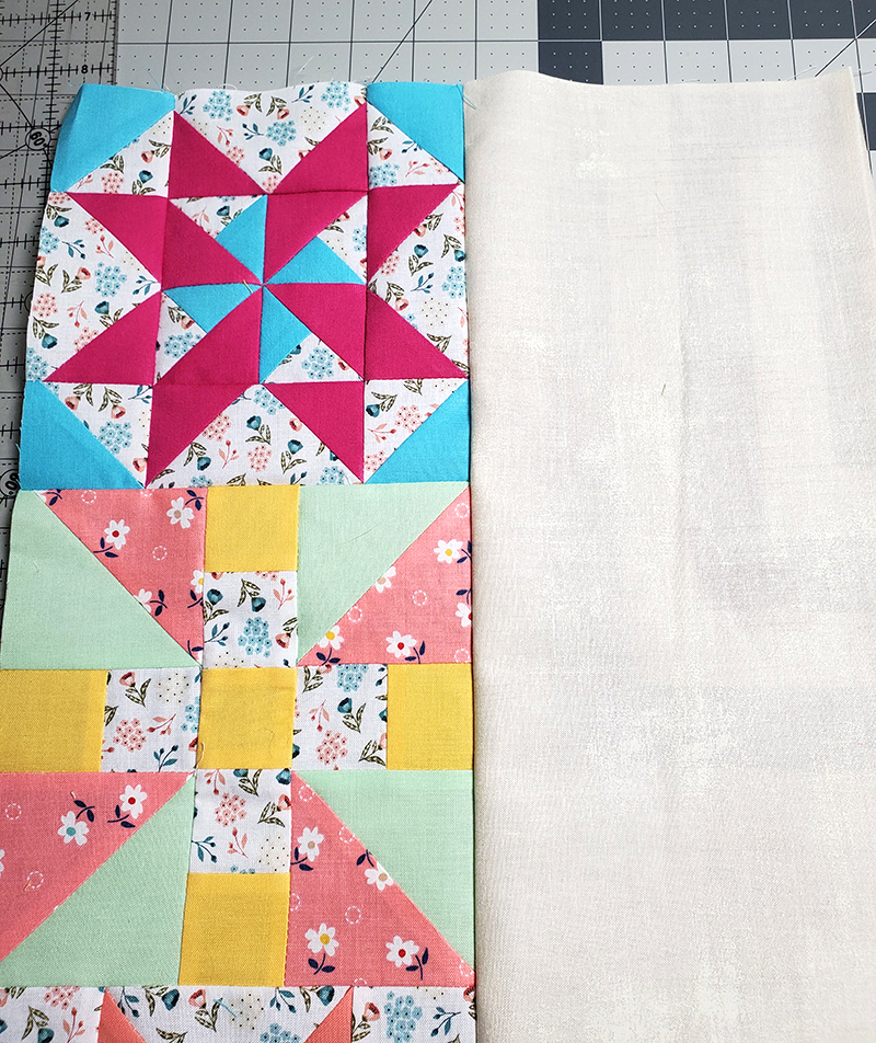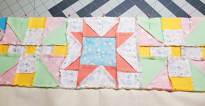 16. Press seam toward quilt blocks.