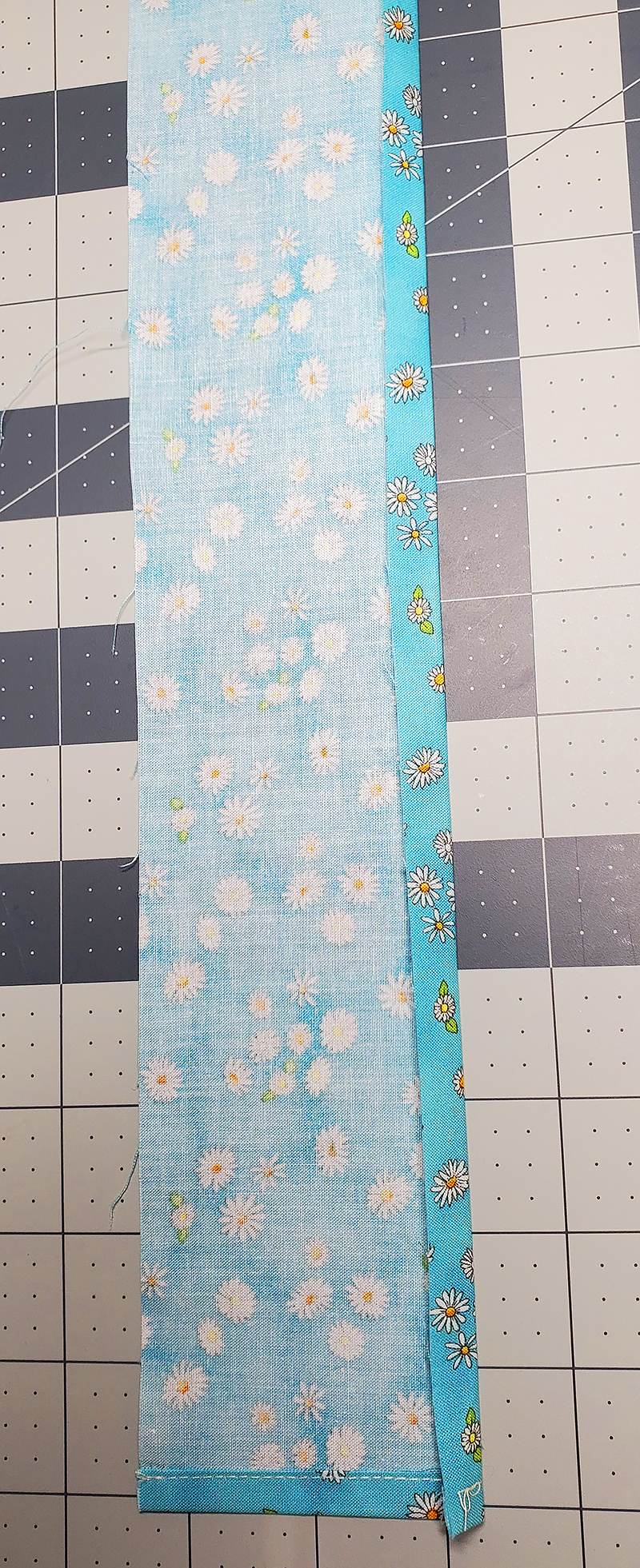 8. Stitch one unit from Step Two to another piece “BB” making sure the two solid colors are on opposite sides of the floral fabric. Press the seam toward the new “BB” square.