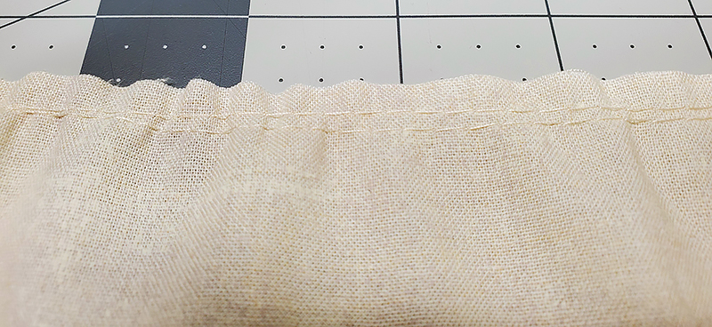 32. Using a large basting stitch, sew TWO rows of stitching on the top edge of Apron skirt (Piece “D”). Leave at least 3” of threads on either end of both rows of stitching. {A Brother gathering foot can be used for this step as well}.