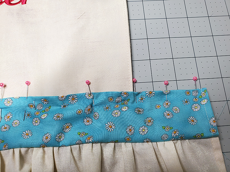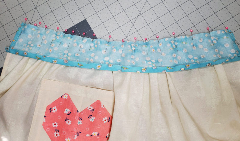 40. Pin the front waistband to the front of the apron bib, making sure that top stays folded.