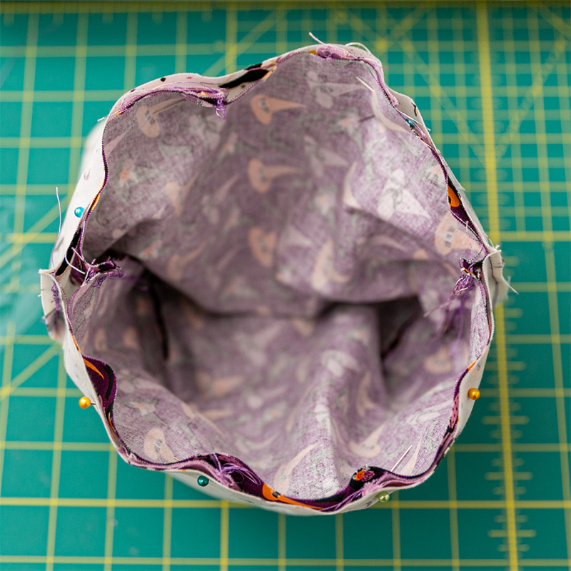 Insert the outer bag (right side out) into the inner bag (inside out). Ensure the straps are tucked inside. Pin the top edges together, matching the side seams. Sew around the top edge with a ½” seam allowance, reinforcing the area where the straps are attached for durability.