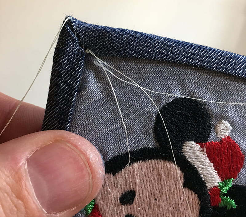 - Since the pieces and binding were too small for me to create a clean mitered edge, use a ladder stitch to tighten the corners.