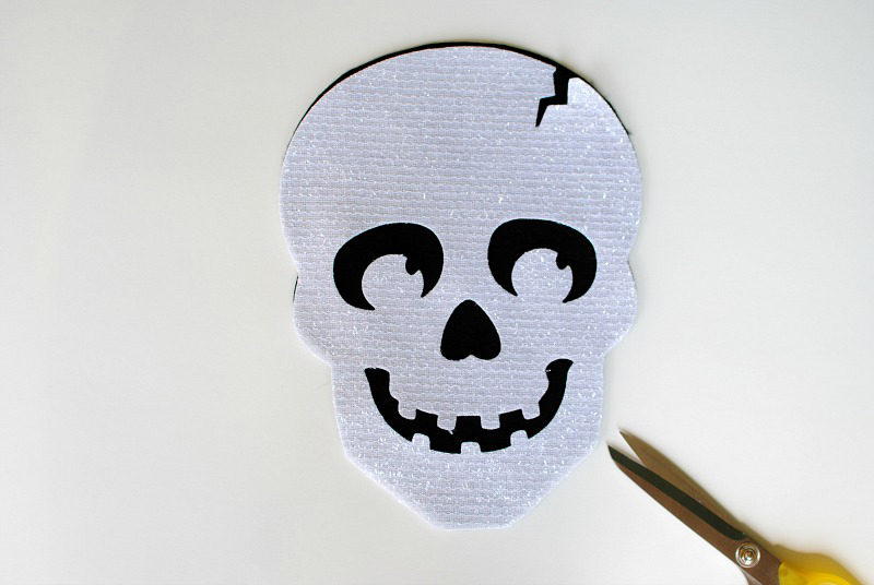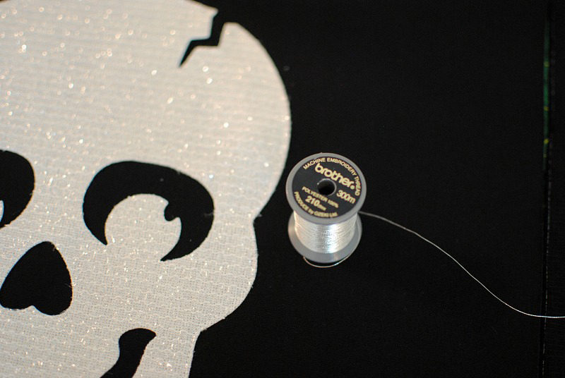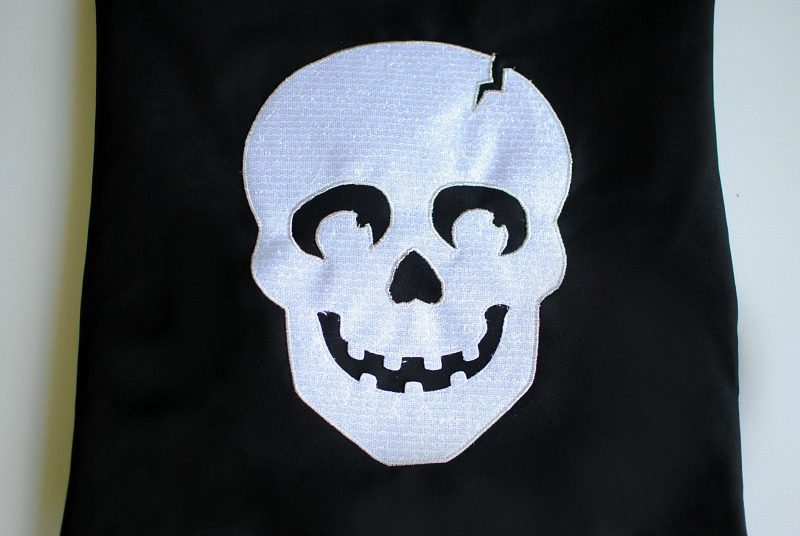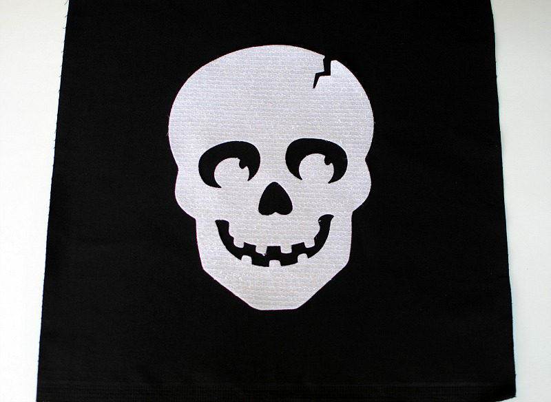 Trace the appliqué design from the template onto your chosen fabric or felt. You can also use pre-cut shapes from craft stores.I opted for a skull design made from sparkly felt.
