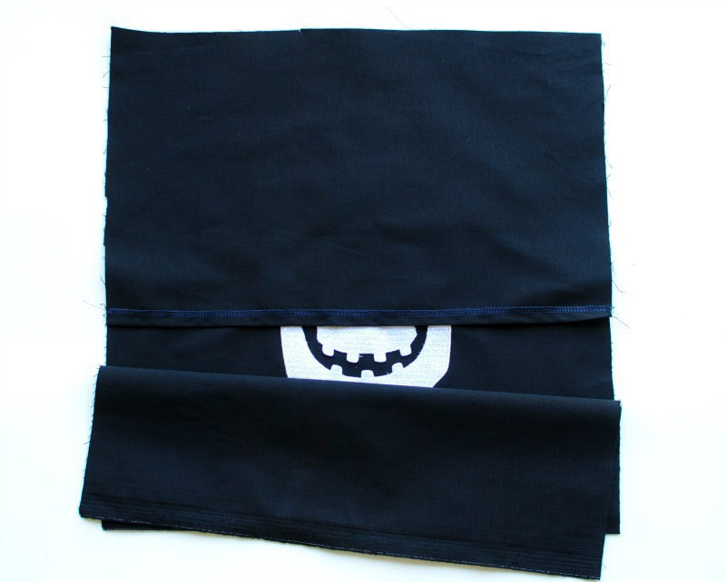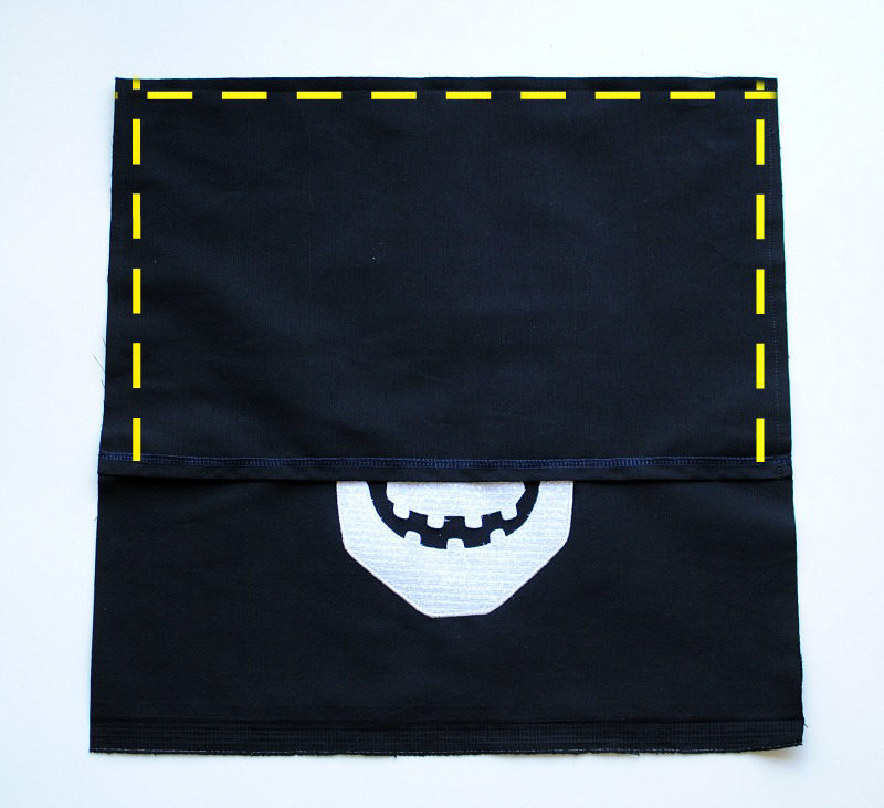 Hem one side of each of the two back fabric pieces by folding over the edges by ½ inch and stitching them in place.