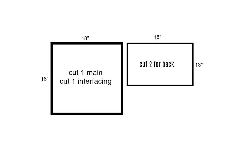 I’m using a 16” throw pillow size with the template below, but you can adjust the measurements to fit the pillow you plan to cover. Just measure the pillow and add a 1” border for seam allowance. I’m also doing an envelope back, so the back measures slightly larger in length (measurement/2 + 4”).