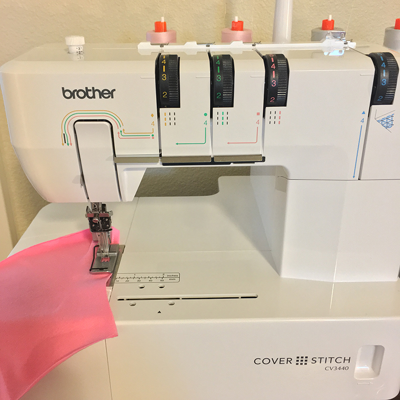If you’ve never sewn knit cuffs before, it’s the same process as sewing the neckband on, but it’s a lot easier since the length is the same for both fabrics. Prior to Britney, I would use my serger on knit because it was more finished looking. But since I knew I wanted to make everything super professional looking with the cover stitch, I used my DreamWeaver (Felicia) instead of my serger to join the sections before using Britney for the professional finish. One tip that I’ve learned when sewing arm cuffs is to sew it with the cuff facing up instead of having it go around the circular part on the body of the machine. Unless the cuff is larger than that part of the machine, it will stretch and cause it to warp a little, which is why I do it this way.