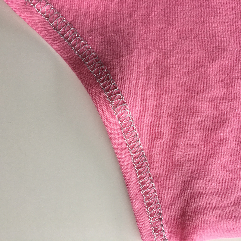I created a handy dandy guide for cutting (see above) that you can save for reference when you get to that stage. In addition to the cuts of the main fabric, you’ll also need to cut a collar band per the guidance of the pattern, and two wrist and a bottom band that are the width of your main fabric cuts and anywhere between four and six inches tall. Once you get it all cut out, the rest of this blog will share some tips for sewing with knit with a little bragging about Britney.