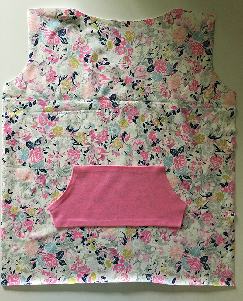 Now you’ll need to guess where you're hands will land for the pocket. And by guess I mean measure and then baste it in place with glue or pins and top/cover stitch the remainder of the edges of the pocket.