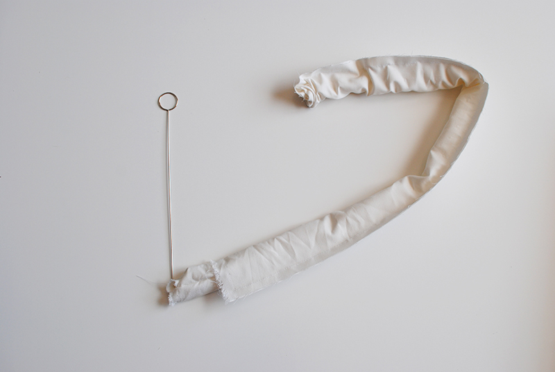 Use a loop turner to flip the strap and drawstring so that the right sides are out.