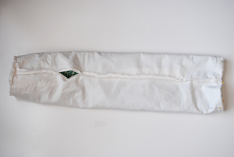 Flip everything right side out through the opening in the lining. Then sew the opening in the lining closed. This can be done by hand or machine. Finally, push the lining down inside the main fabric tube.