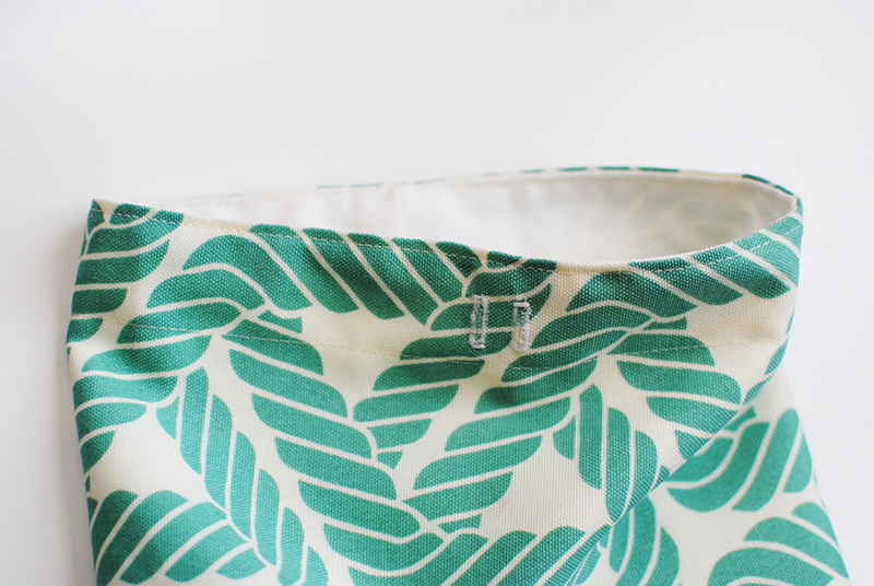 Press the top of the bag down so that the lining is not visible on the outside of the bag. Add a few pins to secure the layers before stitching.