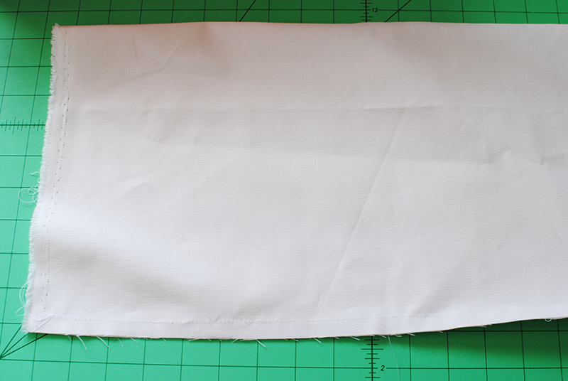 Stitch along the top edge close to the fold. Then, sew another line of stitching 1-inch below the first line to form the casing.