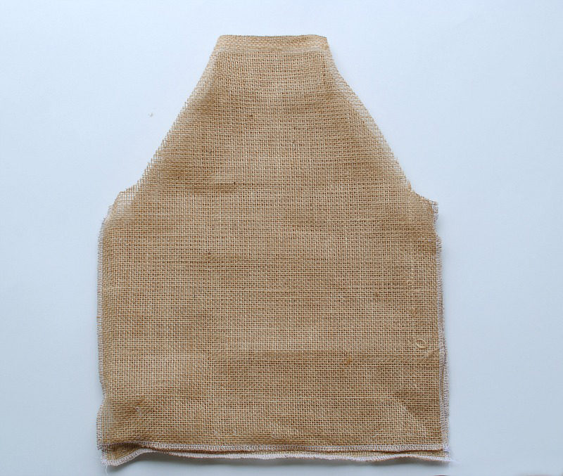 Cut 2 squares of burlap that measure 17” x 14”. I used the selvage edge of my burlap fabric as the top edge. Measure off slants from the top that go down 7” on the side and 4” over and cut. You should have 6” left on the top.