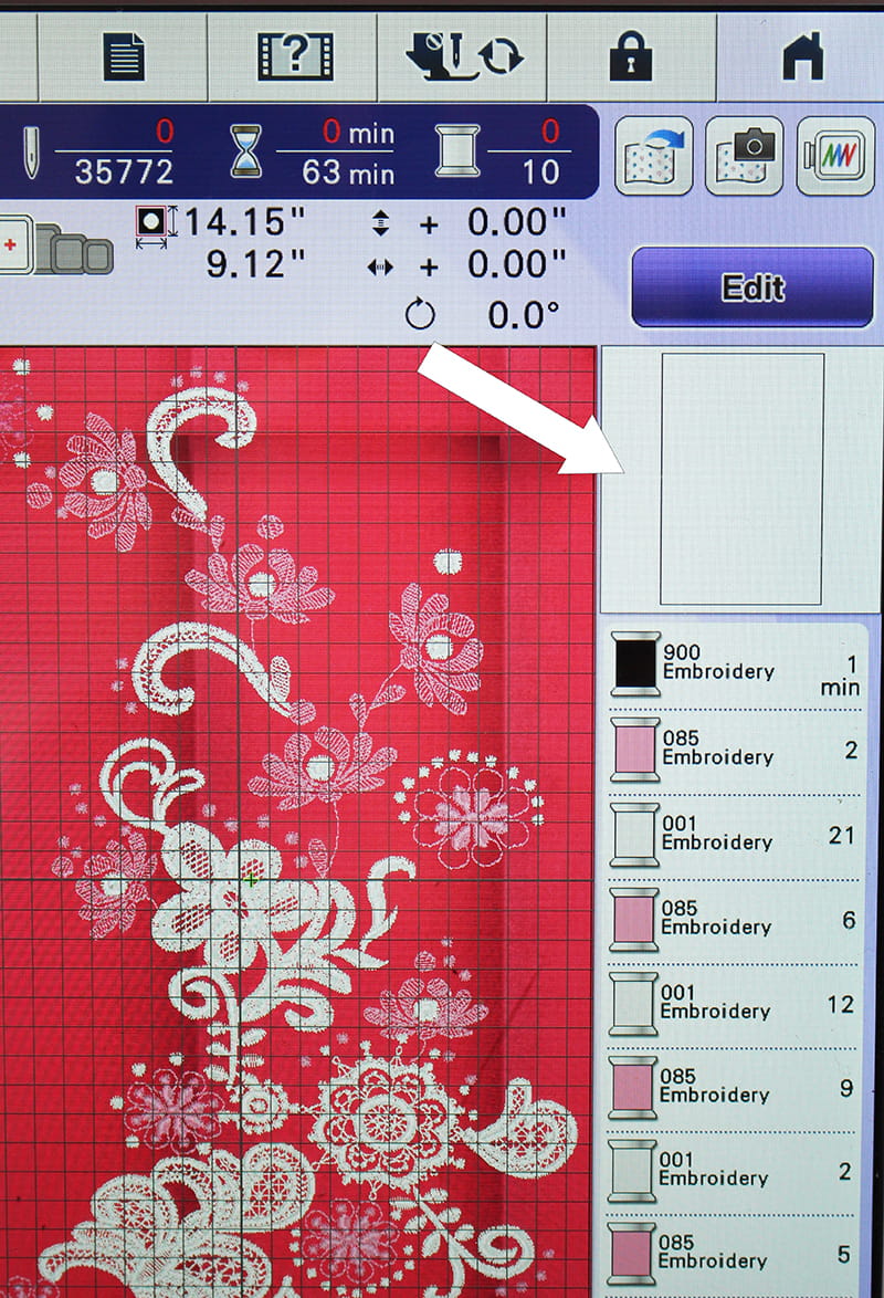 Click the icon to add a basting stitch around the embroidery design. This helps to keep the fabric in place and is particularly helpful when embroidering large design.