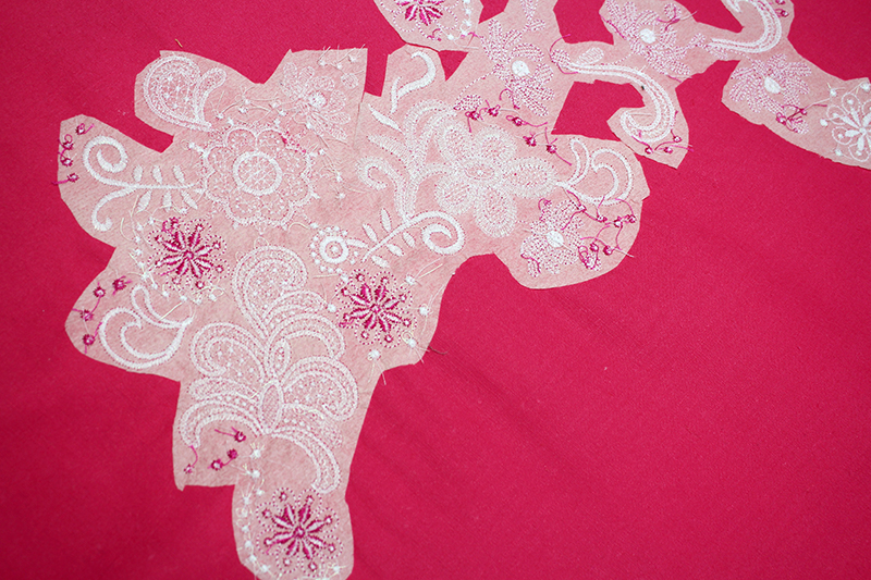 - Remove the fabric from the hoop. Pull away the edges of the stabilizer and trim off the excess.
