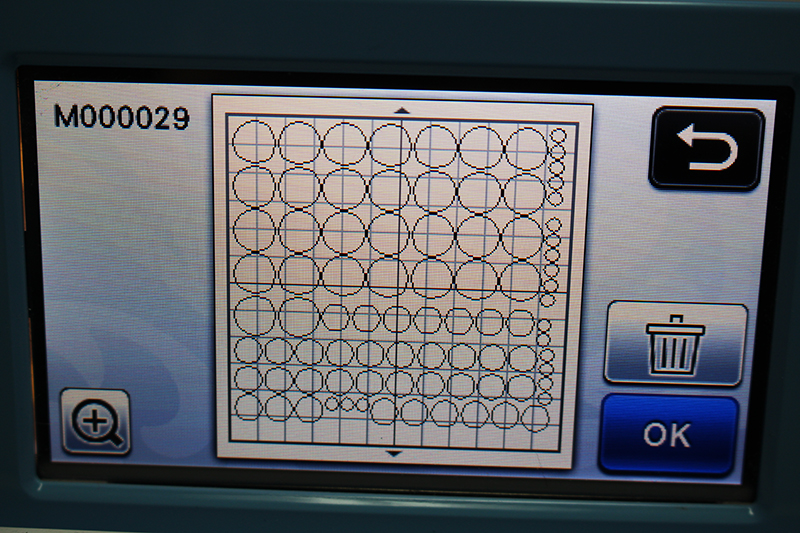 - Test the stitch on circle to make sure you like the finished look. Experiment with stitch length and stitch width.