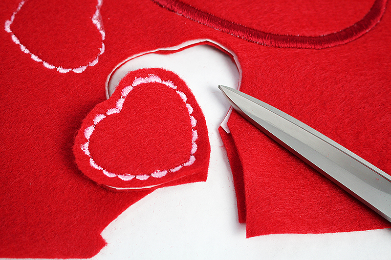 - Embroider the hearts.
