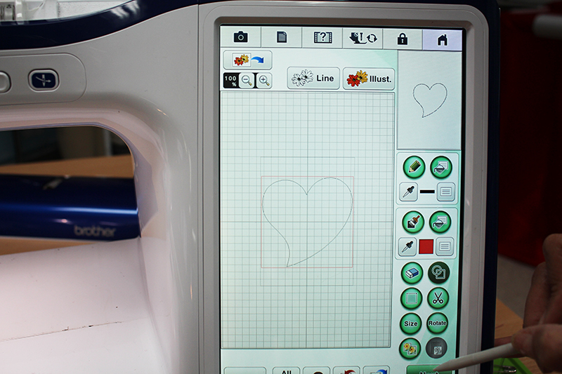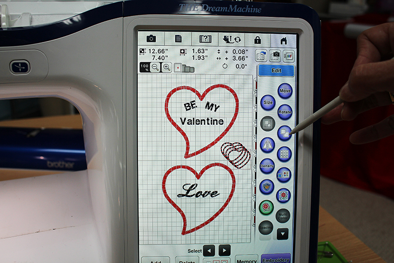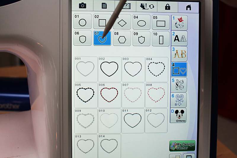 - Start by going into My Design Center on the Brother Embroidery Machine. Choose the hoop size you plan on using. I am using the 14" x 9 /2" so I can embroider a lot of hearts at the same time.