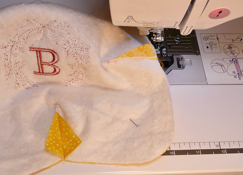 - Layer bowl piece #1 with batting and embroider wreath combined with a built-in monogram letter in center.