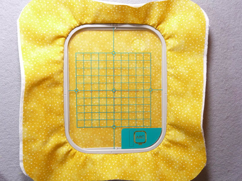 Attach hoop to machine and slip a piece of tear-away stabilizer under the hoop to help support the stitches. See Figure #7.