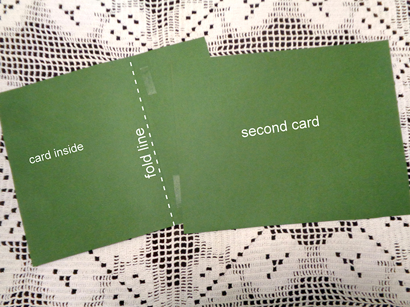 9. Fold along line. Slide second card up to fold and hold in place with tape.
