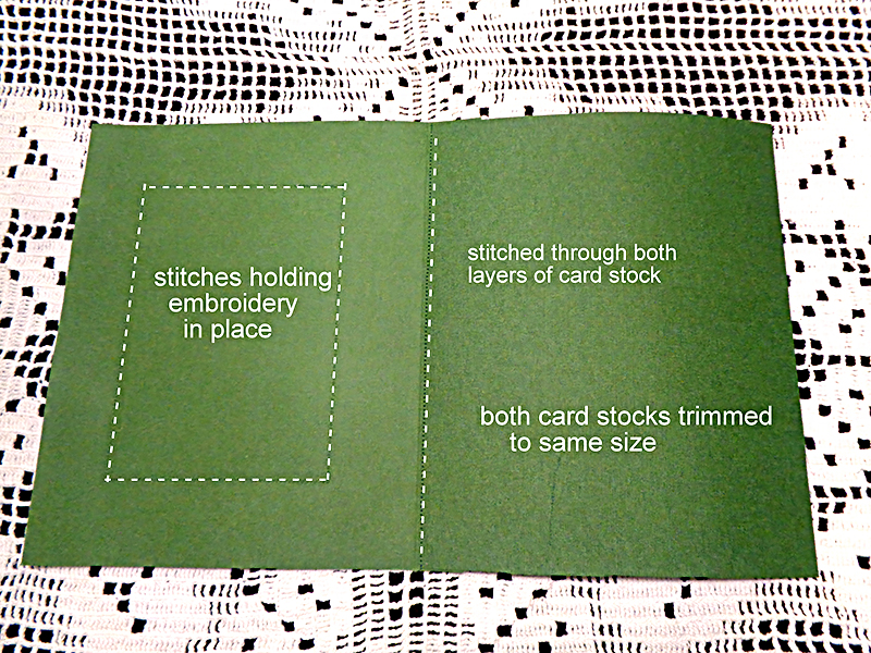 11. Cut the second piece of matching card stock 5 3/8 x 8” and secure to the back of the embroidery with tape.