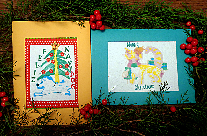 - For Children Created Cards - fabric covered cardboard, batting, fabric marking pens, card stock