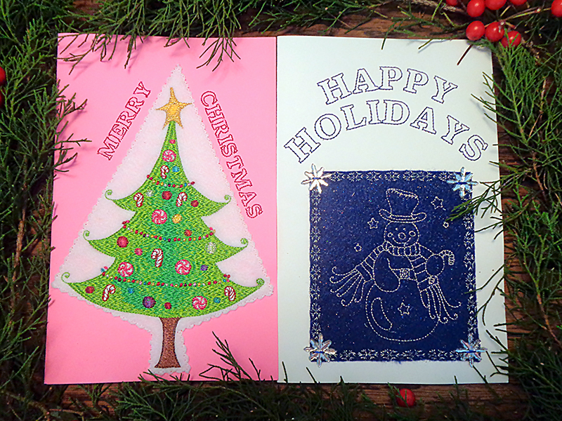 TREE/SNOWMAN - EMBROIDERED ON FELT/APPLIQUE’D ON CARD STOCK
