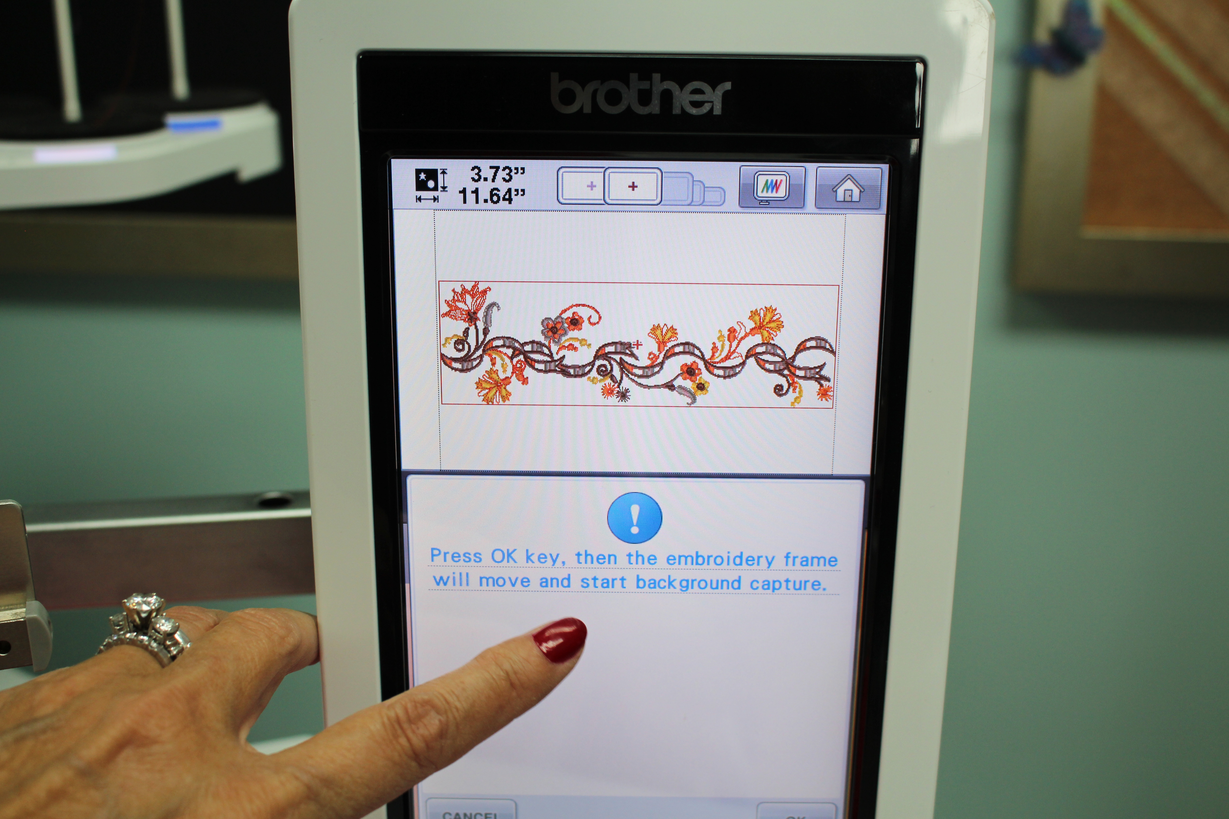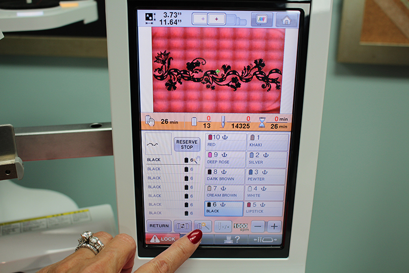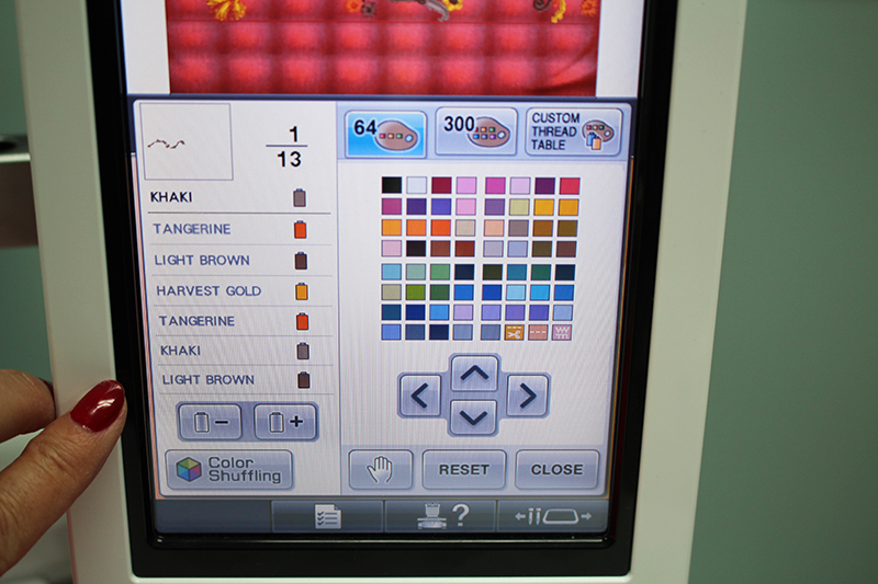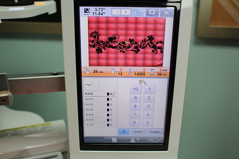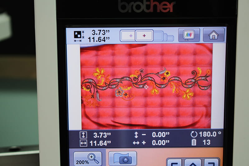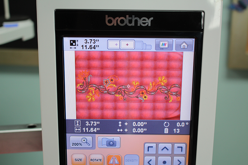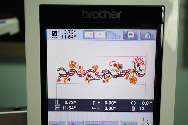 - The embroidery design I’ve chosen is built into the Brother Entrepreneur 10 needle machine