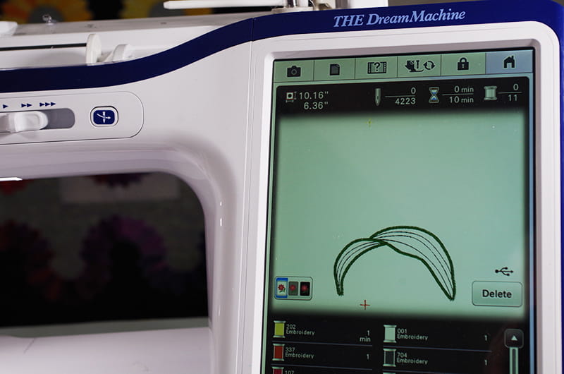 To illustrate how this would work on a single hooping design, let’s look at the screen on THE Dream Machine® Innov-ís XV8500D.- There is great information on the screen, once the design is selected and loaded.