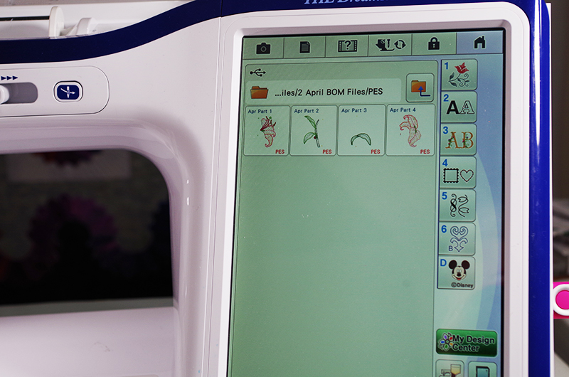 This is a block from Stargazer Lily Block of the Month design by Anna’s Awesome Appliqué Designs and Brother International Corporation makes no representations or warranties regarding such products.