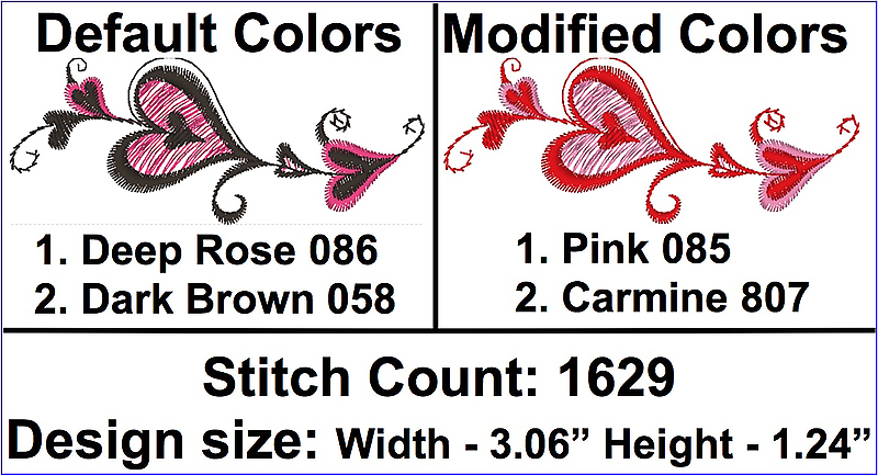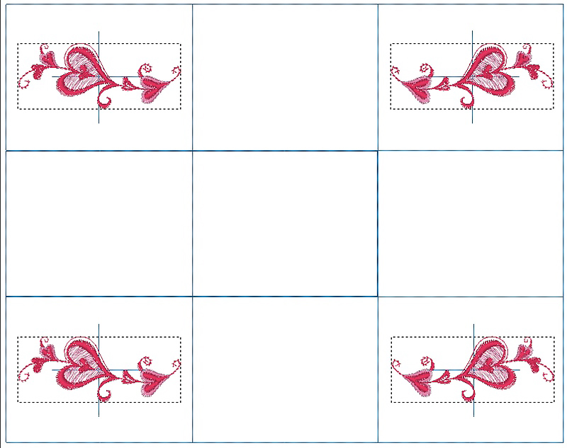 Transfer the heart design to your machine and stitch all four, taking care to mirror image the design and stitch with the orientation shown below in the Figure #3 graphic.
