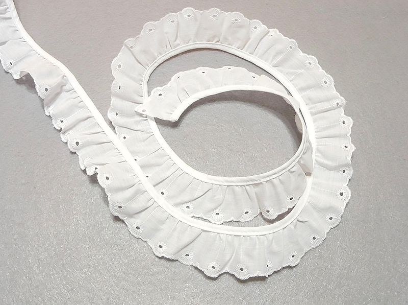 - Ruffled lace trim, 1 1/8th yard of 1- 1 ½-inch wide lace.