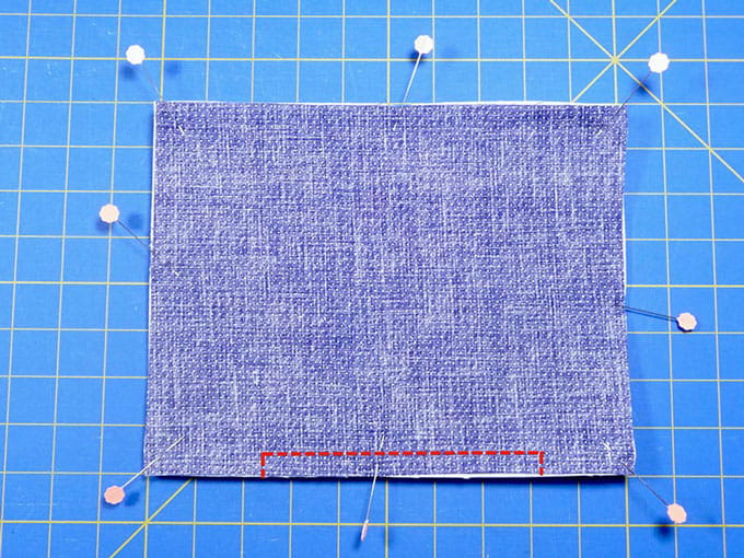 Place embroidered pocket piece and lining right sides together. Sew pieces together using a ½-inch seam allowance, leaving a 4-inch opening along the bottom for turning right side out. See stitching line in Figure #10.