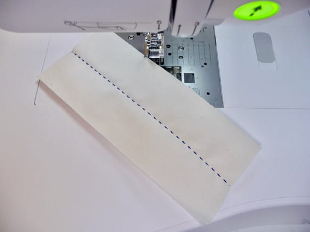 7. It’s time to put the pieces together. Gather zipper, tab piece, and strap. Prepare tab and strap as follows: