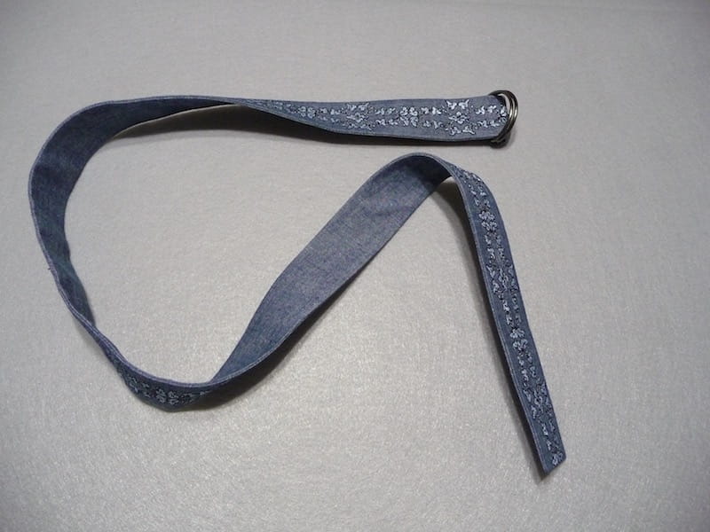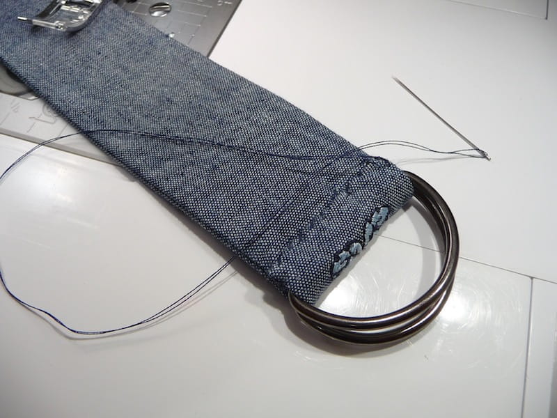- Slip rings over unfinished end of belt. Turn under raw edge and use small hand stitches to finish the end and secure the D rings in place. Wear your belt and be prepared for compliments.