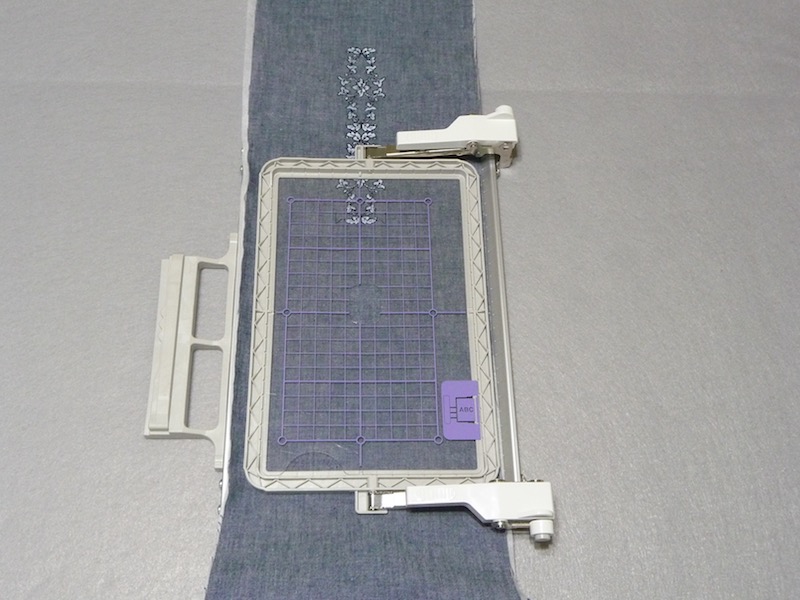 - Embroider motifs in the center of the border frame, linking them together to form a continuous line of patterns. Depending on your machine model, you may have different options for connecting patterns. For this project, the Repeat Pattern function was used to link designs. If you are using this feature you will want to review the instruction manual for your machine by reading about Designing Repeated Patterns and using Assigned Thread Marks. See example below:
