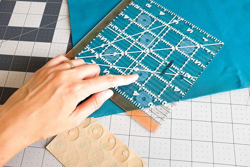 3. Get a grip – A slippery tool may make inaccurate cutting and can throw the spanners in the works, especially if you don’t have enough fabric to fix any errors made while cutting. If you need some additional support and your rulers don’t have grips at the bottom, you could add adhesive non-slip quilting ruler grips at the bottom. They usually come in the form of transparent sticky dots with grips and you stick them at the bottom of the ruler. Depending on how grippy you would like your ruler to be you can add as many as needed.