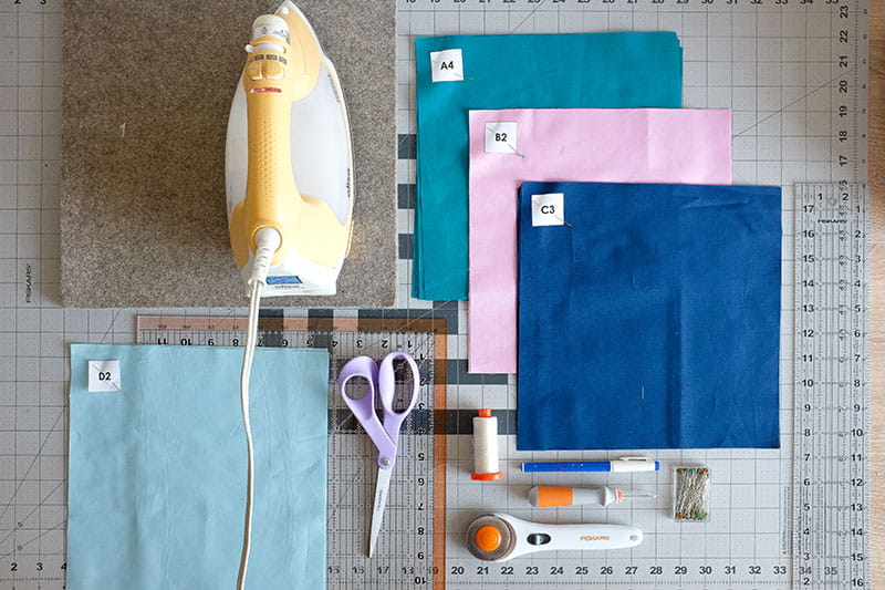 - Corresponding fabric pieces for QST and SQST blocks – referring to the Geometric Jewels Sampler quilt pattern on page 3, you’ll need the following fabric pieces labelled as: A4, B2, C3 and D2.