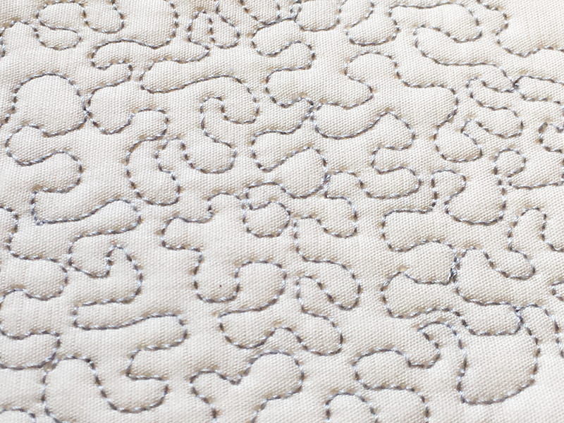 Another tip for using micro stippling on your quilt: Make your stitches smaller to work well with the directional changes. I usually switch from 11 stitches per inch to 12 or more stitches per inch, up to the maximum of 16. (Remember that a larger number of stitches per inch means that each stitch is shorter.)