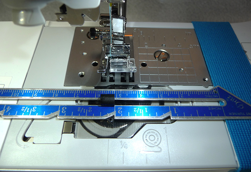 - Now you can use a seam gauge to measure the distance from the needle to the edge of the elastic and simply slide it along the free arm for a variety of distances. See Figure #6.