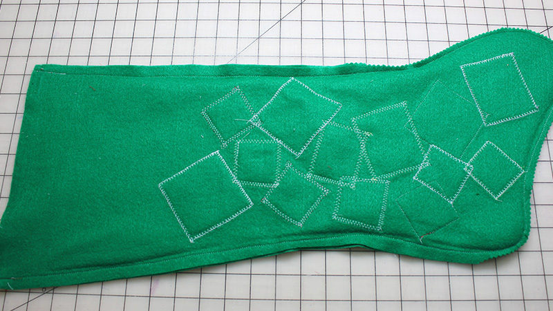 ATTACH APPLIQUÉ PIECES ONTO STOCKING