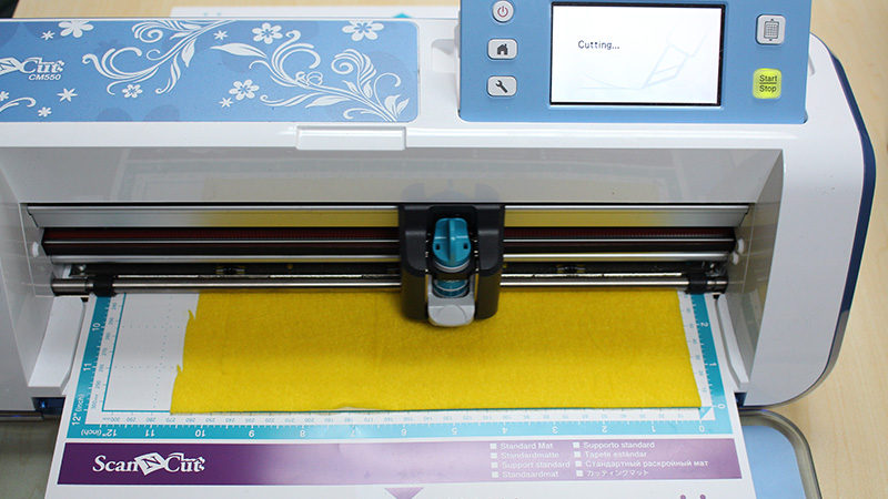 Cut out the individual pieces with the Brother ScanNCut- Place the pieces of felt on the cutting mat and press the fabric firmly to stick without wrinkles as shown