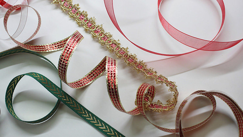 - The ribbons represent the gift wrapping on a package. Gold and silver metallic add a touch of glimmer of holiday lights.