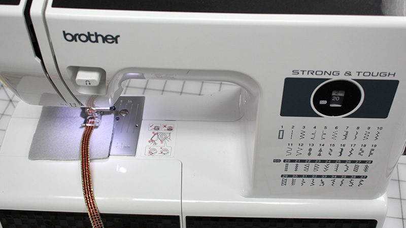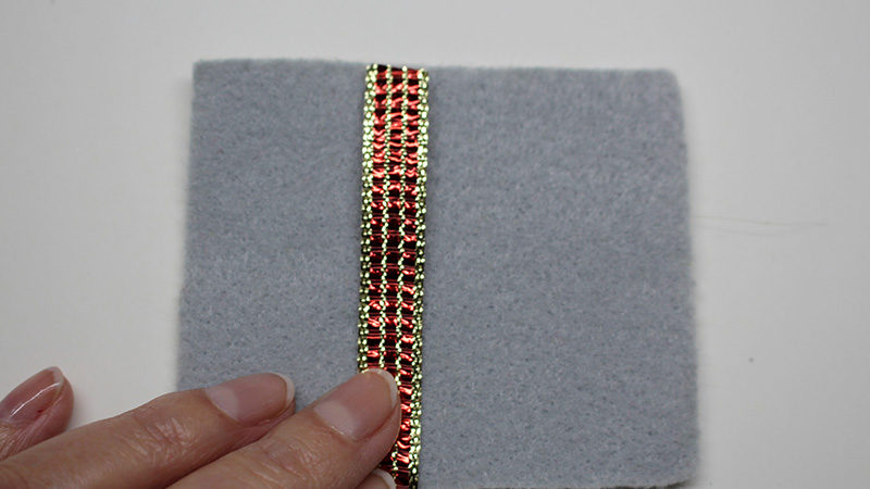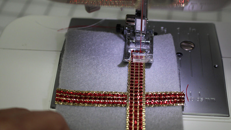 - Separate each box by cutting the ribbon. Line up the ribbon perpendicular to the first ribbon and stitch.