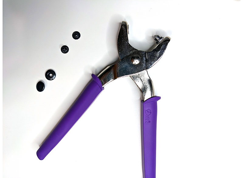 - You’ll connect the rivets to the bag and strap according to the instructions on the back of the rivet packaging. When connecting, you’ll need the snap pliers.