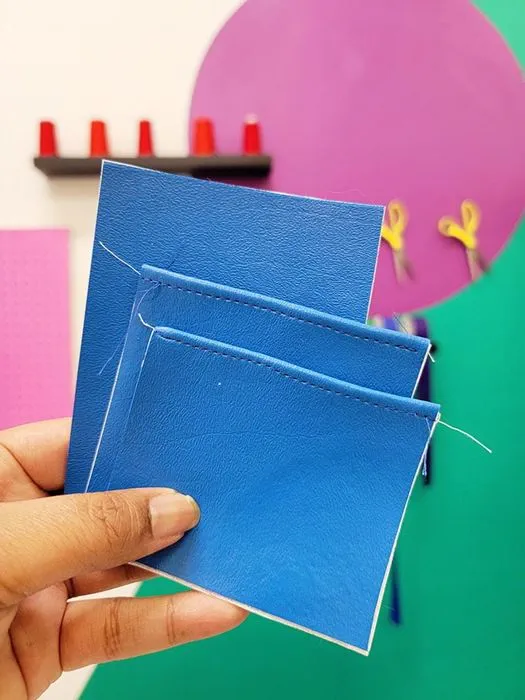 6. Let’s assemble the back. Grab the last large rectangle pieces and both pocket pieces.