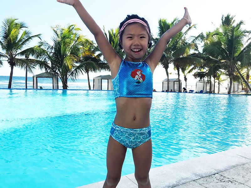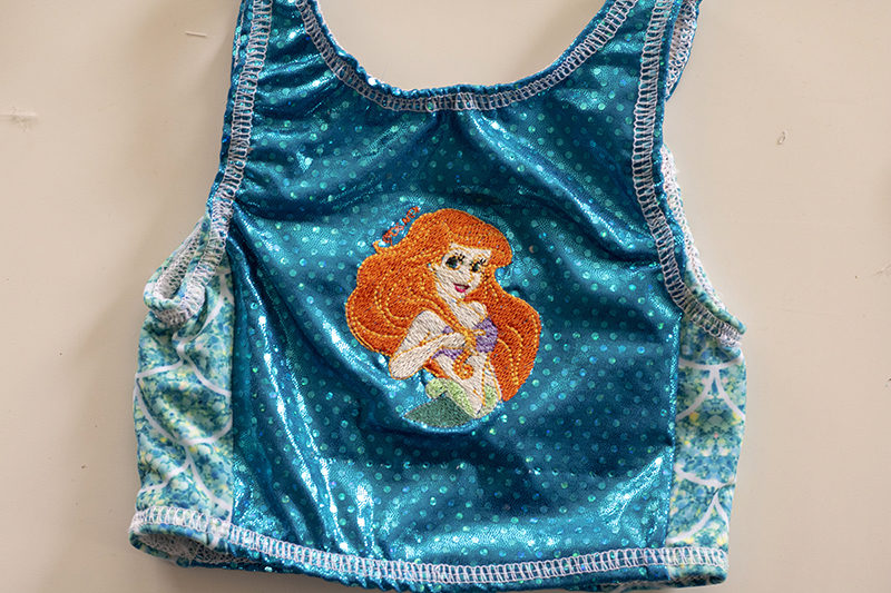 The Disney designs that are included on the Brother 1750Dare so fun for kids’ clothes. I used the Ariel design on this suit. I didn’t have any issues with stretching or distortion of the fabric