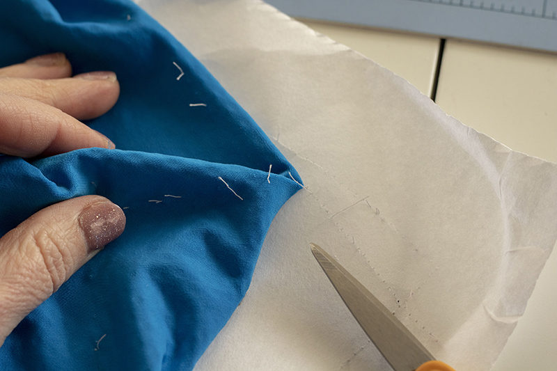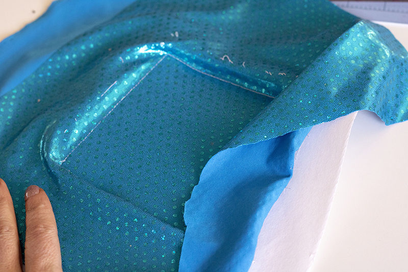 I couldn’t really fold the mermaid design in half to cut my suit pattern, so I just placed the fold edge in the middle of the design, cut on one side, then flipped it over and cut the other side of the suit front.